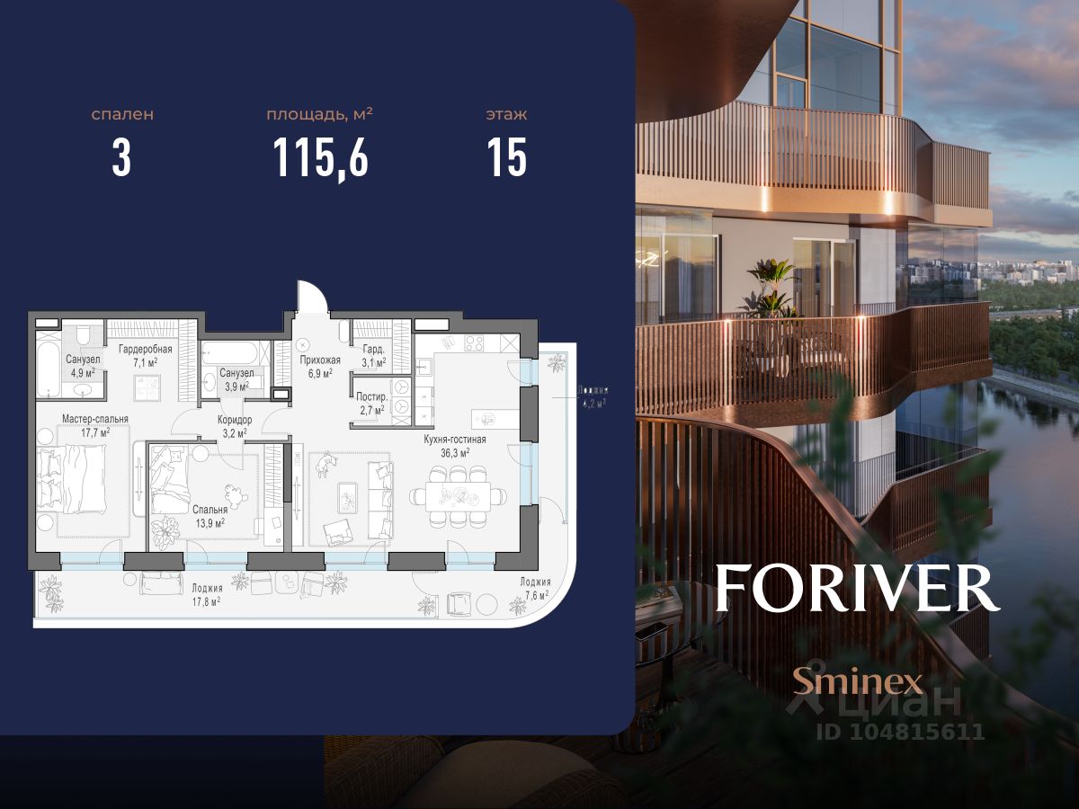 Прямая продажа от застройщика. В жилом квартале, расположенном в Даниловском районе Москвы, продаётся 3-комнатная квартира площадью 115.60 кв.м без отделки. Квартира расположена на 15 этаже 19-этажного дома, корпус Line 1, в жилом квартале бизнес-класса Foriver.
