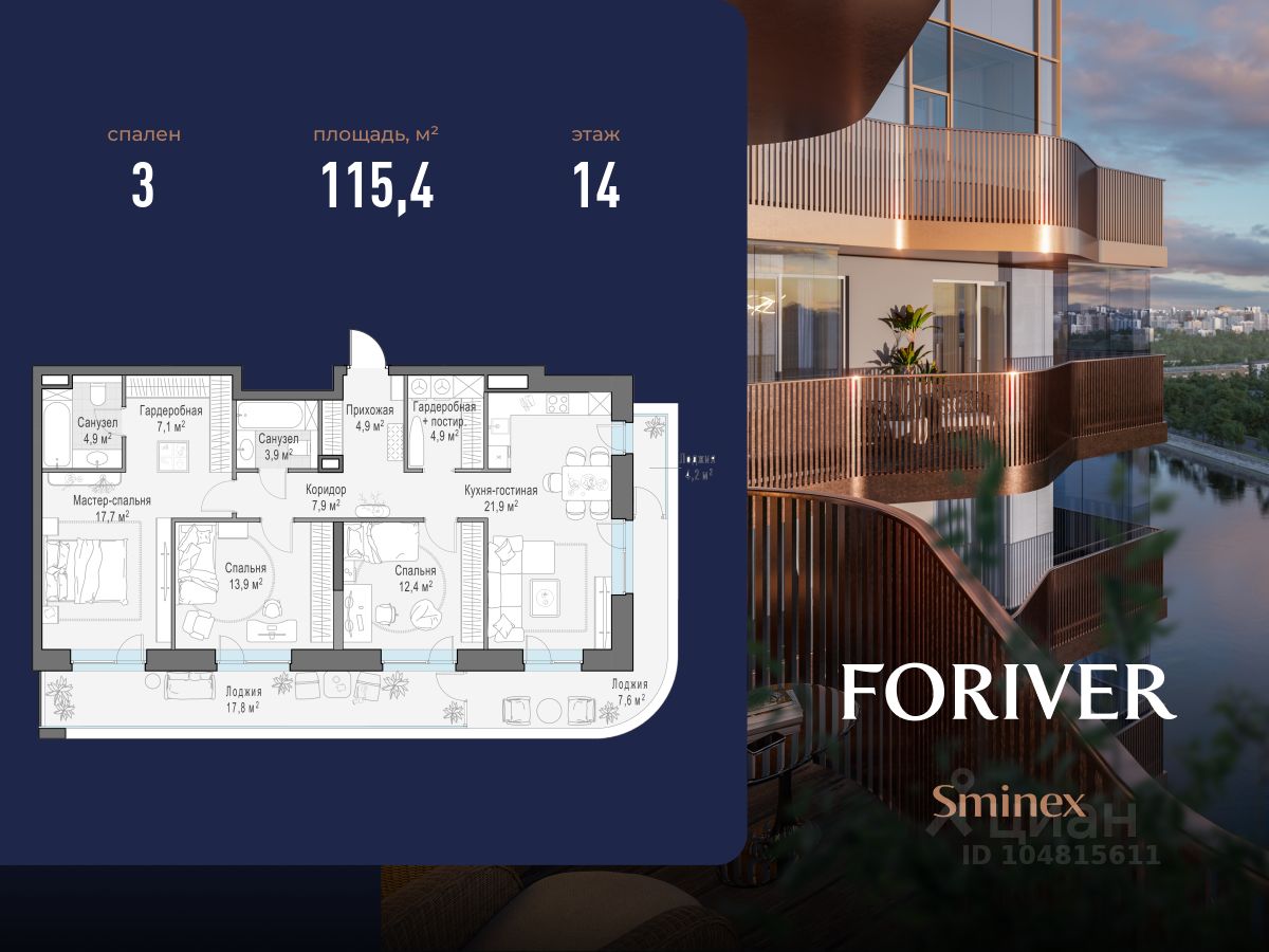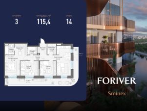 Прямая продажа от застройщика. В жилом квартале, расположенном в Даниловском районе Москвы, продаётся 3-комнатная квартира площадью 115.40 кв.м без отделки. Квартира расположена на 14 этаже 19-этажного дома, корпус Line 1, в жилом квартале бизнес-класса Foriver.