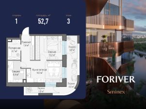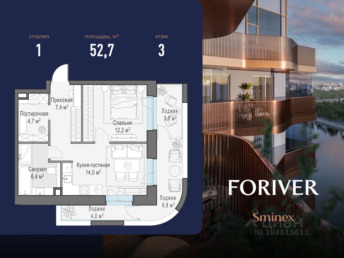 Прямая продажа от застройщика. В жилом квартале, расположенном в Даниловском районе Москвы, продаётся 1-комнатная квартира площадью 52.70 кв.м без отделки. Квартира расположена на 3 этаже 19-этажного дома, корпус Line 1, в жилом квартале бизнес-класса Foriver.