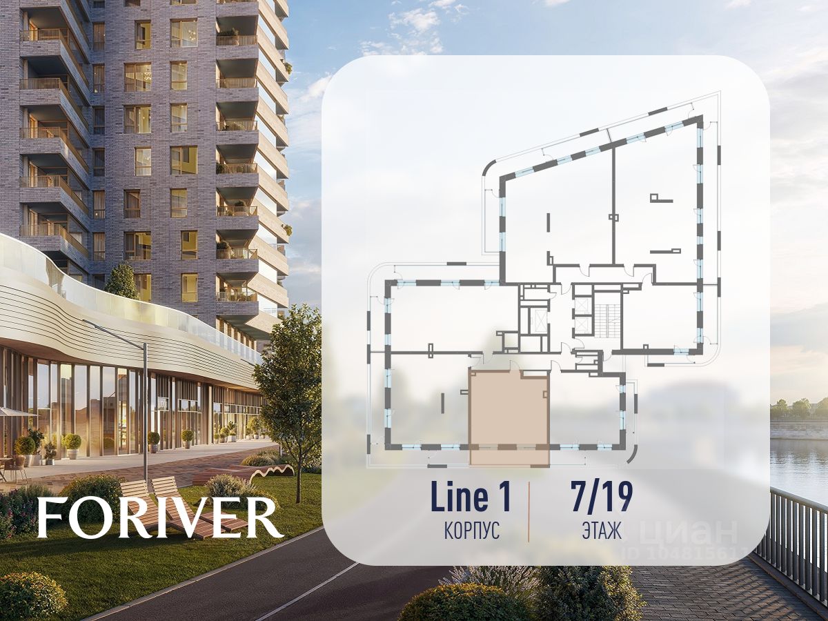 Прямая продажа от застройщика. В жилом квартале, расположенном в Даниловском районе Москвы, продаётся 1-комнатная квартира площадью 57.40 кв.м без отделки. Квартира расположена на 7 этаже 19-этажного дома, корпус Line 1, в жилом квартале бизнес-класса Foriver.