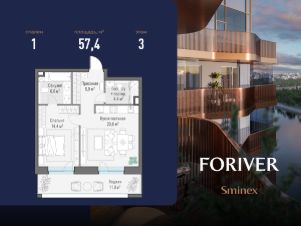 Прямая продажа от застройщика. В жилом квартале, расположенном в Даниловском районе Москвы, продаётся 1-комнатная квартира площадью 57.40 кв.м без отделки. Квартира расположена на 3 этаже 19-этажного дома, корпус Line 1, в жилом квартале бизнес-класса Foriver.