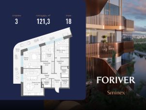 Прямая продажа от застройщика. В жилом квартале, расположенном в Даниловском районе Москвы, продаётся 3-комнатная квартира площадью 121.30 кв.м без отделки. Квартира расположена на 18 этаже 19-этажного дома, корпус Line 1, в жилом квартале бизнес-класса Foriver.