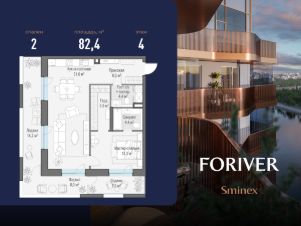 Прямая продажа от застройщика. В жилом квартале, расположенном в Даниловском районе Москвы, продаётся 2-комнатная квартира площадью 82.40 кв.м без отделки. Квартира расположена на 4 этаже 19-этажного дома, корпус Line 1, в жилом квартале бизнес-класса Foriver.