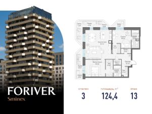 Прямая продажа от застройщика. В жилом квартале, расположенном в Даниловском районе Москвы, продаётся 3-комнатная квартира площадью 124.40 кв.м без отделки. Квартира расположена на 13 этаже 19-этажного дома, корпус Line 10, в жилом квартале бизнес-класса Foriver.