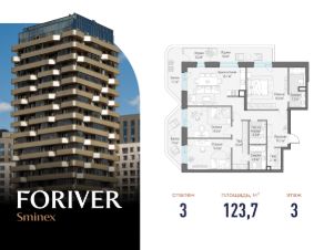 Прямая продажа от застройщика. В жилом квартале, расположенном в Даниловском районе Москвы, продаётся 3-комнатная квартира площадью 123.70 кв.м без отделки. Квартира расположена на 3 этаже 19-этажного дома, корпус Line 10, в жилом квартале бизнес-класса Foriver.