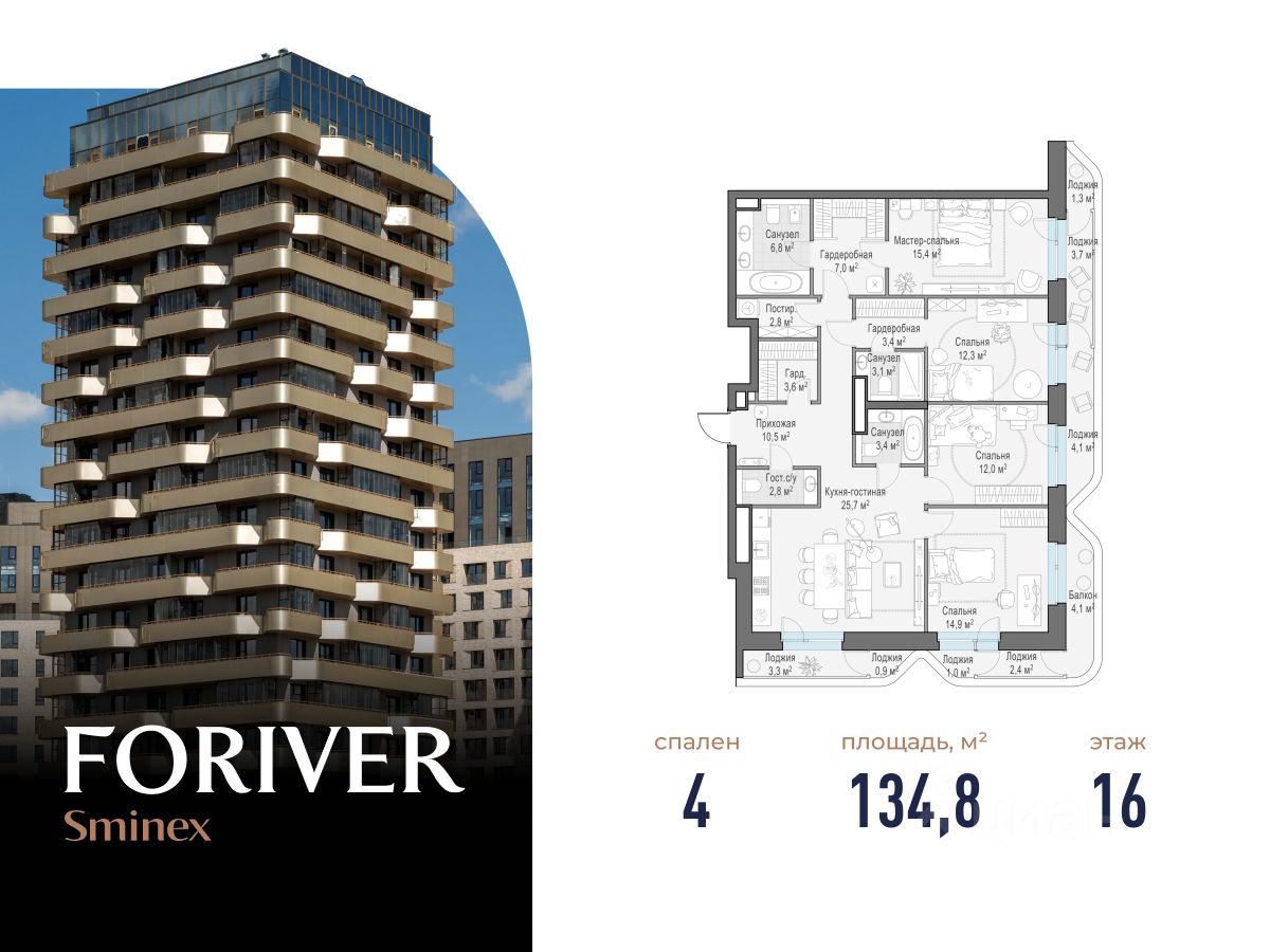 Прямая продажа от застройщика. В жилом квартале, расположенном в Даниловском районе Москвы, продаётся 4-комнатная квартира площадью 134.80 кв.м без отделки. Квартира расположена на 16 этаже 19-этажного дома, корпус Line 10, в жилом квартале бизнес-класса Foriver.