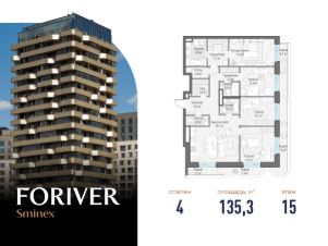 Прямая продажа от застройщика. В жилом квартале, расположенном в Даниловском районе Москвы, продаётся 4-комнатная квартира площадью 135.30 кв.м без отделки. Квартира расположена на 15 этаже 19-этажного дома, корпус Line 10, в жилом квартале бизнес-класса Foriver.