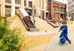 Квартал продуман до мелочей. В нём обустроен двор с газонами и прогулочными аллеями, видовыми площадками для отдыха с деревянными шезлонгами и перголами. Резиденты будут наслаждаться эффектной панорамой Москвы-реки с шестиметровой возвышенности стилобата.