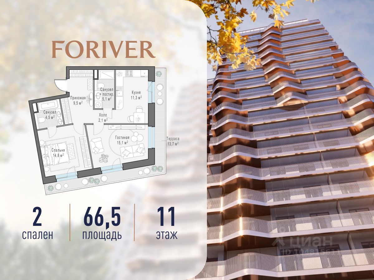 Прямая продажа от застройщика. В жилом квартале, расположенном в Даниловском районе Москвы, продаётся 2-комнатная квартира площадью 66.50 кв.м без отделки. Квартира расположена на 11 этаже 14-этажного дома, корпус Line 8, в жилом квартале бизнес-класса Foriver.