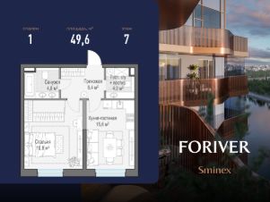 Прямая продажа от застройщика. В жилом квартале, расположенном в Даниловском районе Москвы, продаётся 1-комнатная квартира площадью 49.60 кв.м без отделки. Квартира расположена на 7 этаже 14-этажного дома, корпус Line 8, в жилом квартале бизнес-класса Foriver.