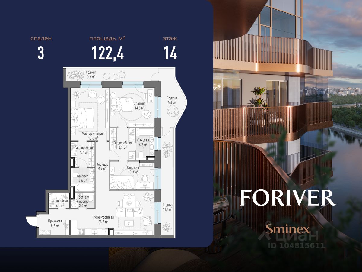 Прямая продажа от застройщика. В жилом квартале, расположенном в Даниловском районе Москвы, продаётся 3-комнатная квартира площадью 122.40 кв.м без отделки. Квартира расположена на 14 этаже 19-этажного дома, корпус Line 4, в жилом квартале бизнес-класса Foriver.