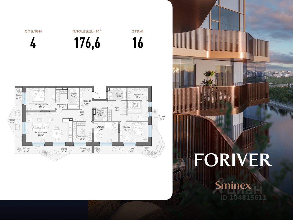Прямая продажа от застройщика. В жилом квартале, расположенном в Даниловском районе Москвы, продаётся 4-комнатная квартира площадью 176.60 кв.м без отделки. Квартира расположена на 16 этаже 19-этажного дома, корпус Line 4, в жилом квартале бизнес-класса Foriver.