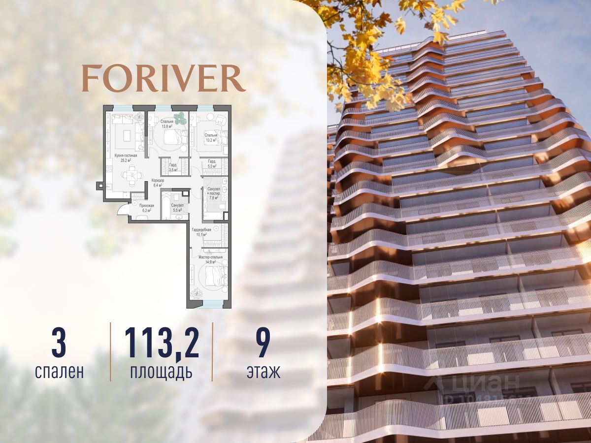 Прямая продажа от застройщика. В жилом квартале, расположенном в Даниловском районе Москвы, продаётся 3-комнатная квартира площадью 113.20 кв.м без отделки. Квартира расположена на 9 этаже 12-этажного дома, корпус Line 9, в жилом квартале бизнес-класса Foriver.