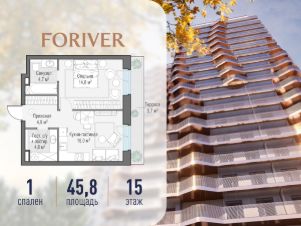 Прямая продажа от застройщика. В жилом квартале, расположенном в Даниловском районе Москвы, продаётся 1-комнатная квартира площадью 45.80 кв.м без отделки. Квартира расположена на 15 этаже 16-этажного дома, корпус Line 9, в жилом квартале бизнес-класса Foriver.
