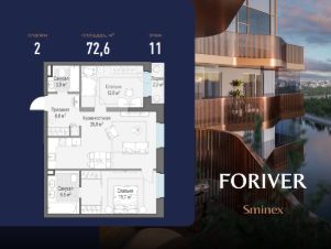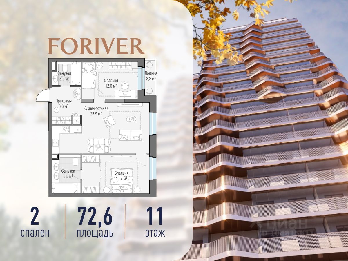 Прямая продажа от застройщика. В жилом квартале, расположенном в Даниловском районе Москвы, продаётся 2-комнатная квартира площадью 72.60 кв.м без отделки. Квартира расположена на 11 этаже 14-этажного дома, корпус Line 9, в жилом квартале бизнес-класса Foriver.