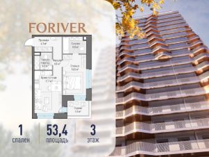 Прямая продажа от застройщика. В жилом квартале, расположенном в Даниловском районе Москвы, продаётся 1-комнатная квартира площадью 53.40 кв.м без отделки. Квартира расположена на 3 этаже 19-этажного дома, корпус Line 11, в жилом квартале бизнес-класса Foriver.