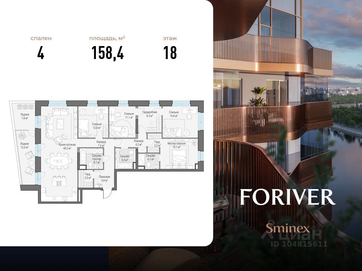 Прямая продажа от застройщика. В жилом квартале, расположенном в Даниловском районе Москвы, продаётся 4-комнатная квартира площадью 158.40 кв.м без отделки. Квартира расположена на 18 этаже 19-этажного дома, корпус Line 11, в жилом квартале бизнес-класса Foriver.