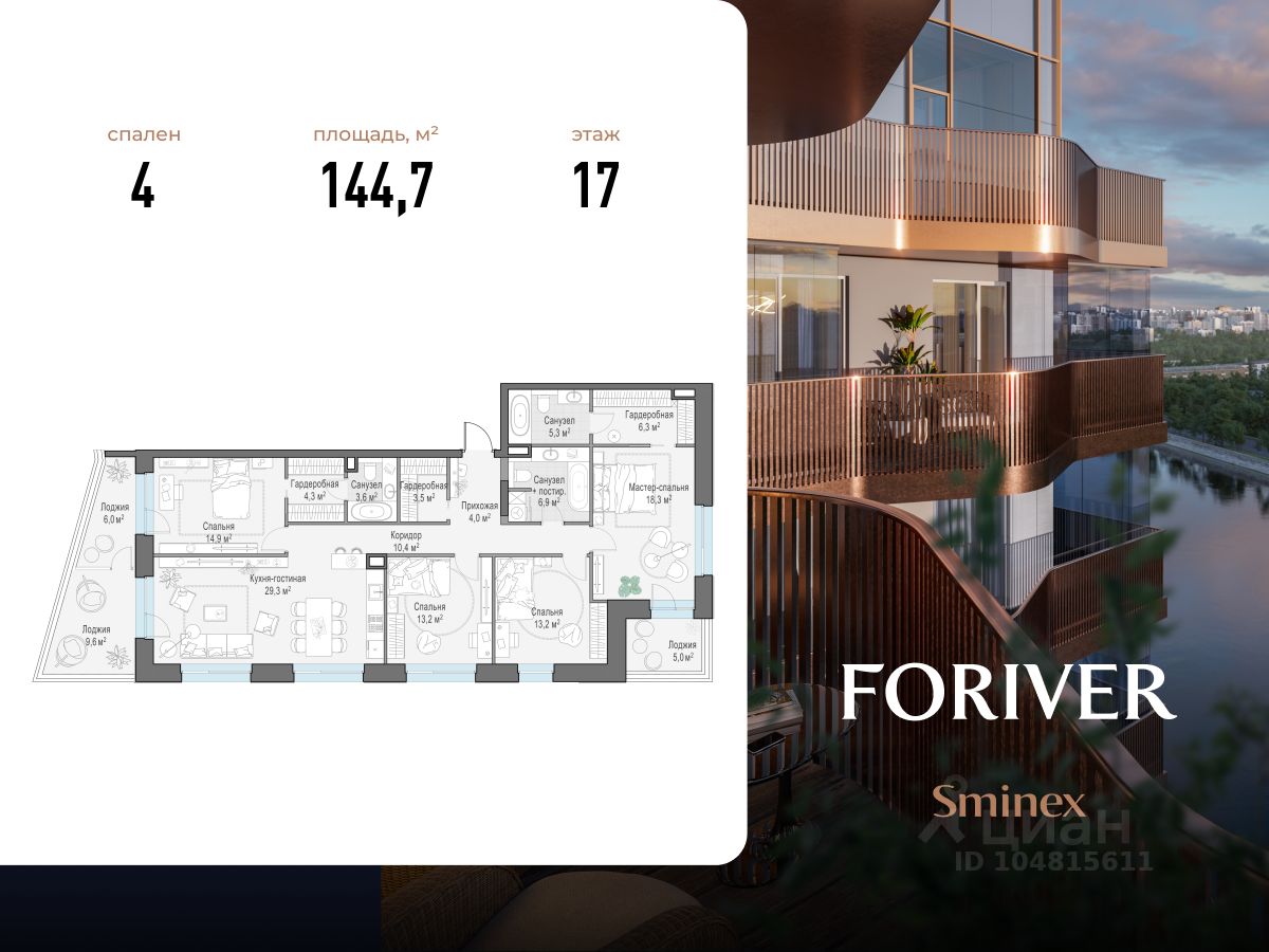 Прямая продажа от застройщика. В жилом квартале, расположенном в Даниловском районе Москвы, продаётся 4-комнатная квартира площадью 144.70 кв.м без отделки. Квартира расположена на 17 этаже 19-этажного дома, корпус Line 5, в жилом квартале бизнес-класса Foriver.