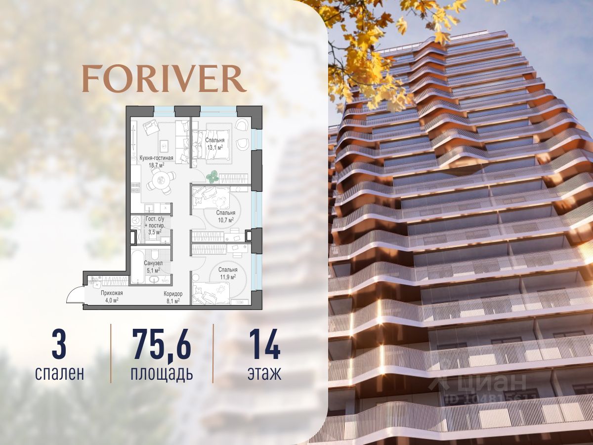 Прямая продажа от застройщика. В жилом квартале, расположенном в Даниловском районе Москвы, продаётся 3-комнатная квартира площадью 75.60 кв.м без отделки. Квартира расположена на 14 этаже 19-этажного дома, корпус Line 5, в жилом квартале бизнес-класса Foriver.