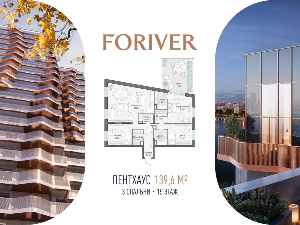 В Foriver представлены готовые просторные квартиры по привлекательной цене: лоты с видами на Москву-реку; пентхаусы с каминами, террасами и потолками высотой до 6,8 м; варианты на втором этаже с террасами; таунхаусы с отдельными входами.