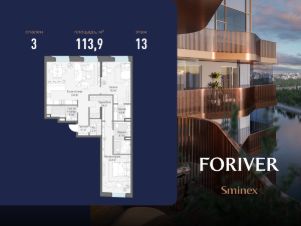 Прямая продажа от застройщика. В жилом квартале, расположенном в Даниловском районе Москвы, продаётся 3-комнатная квартира площадью 113.90 кв.м без отделки. Квартира расположена на 13 этаже 14-этажного дома, корпус Line 3, в жилом квартале бизнес-класса Foriver.