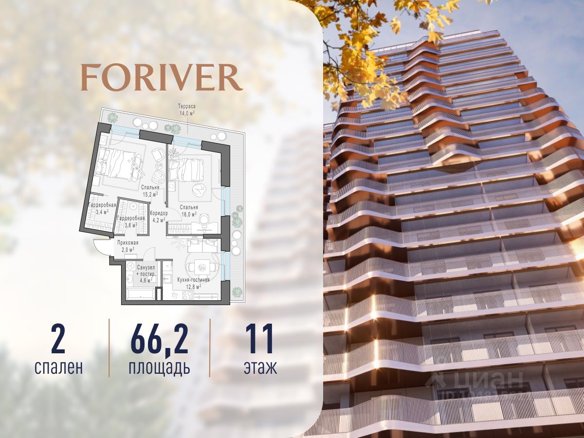 Прямая продажа от застройщика. В жилом квартале, расположенном в Даниловском районе Москвы, продаётся 2-комнатная квартира площадью 66.20 кв.м без отделки. Квартира расположена на 11 этаже 14-этажного дома, корпус Line 3, в жилом квартале бизнес-класса Foriver.