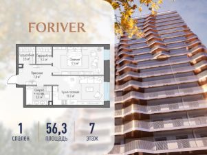 Прямая продажа от застройщика. В жилом квартале, расположенном в Даниловском районе Москвы, продаётся 1-комнатная квартира площадью 56.30 кв.м без отделки. Квартира расположена на 7 этаже 19-этажного дома, корпус Line 6, в жилом квартале бизнес-класса Foriver.