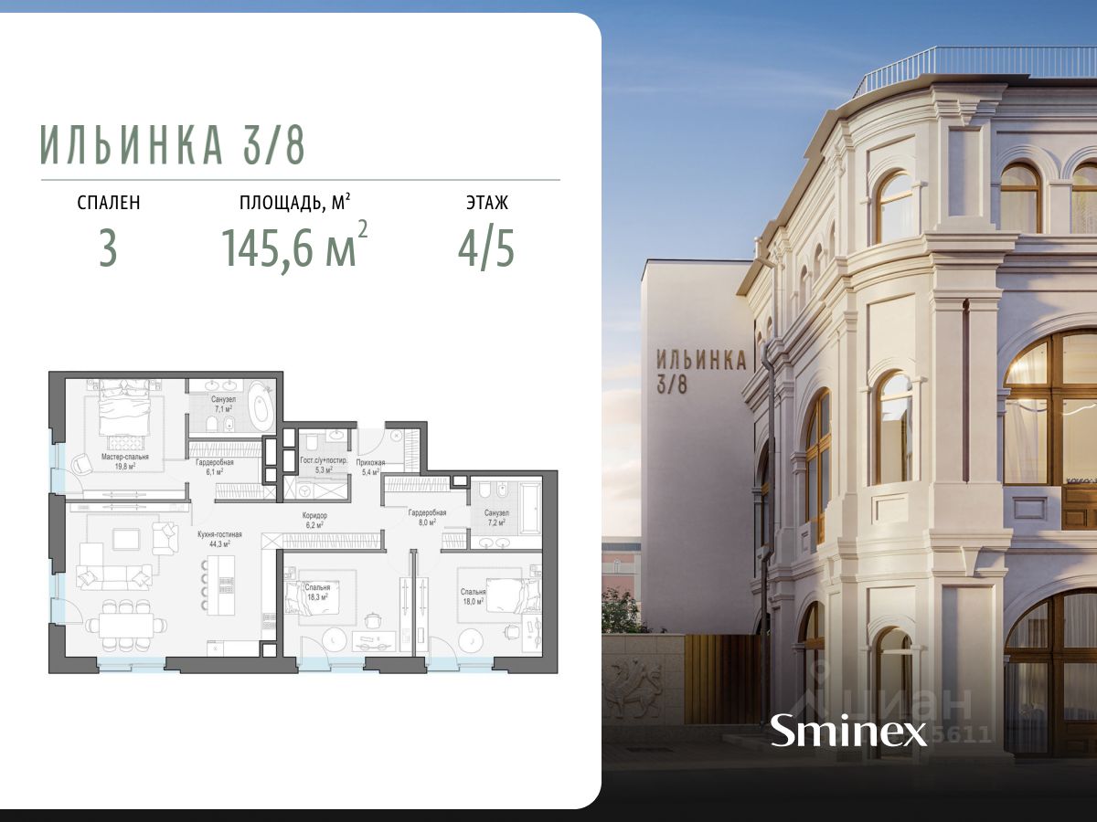 "Ильинка 3/8" - cамая близкая к Кремлю и Красной площади коллекция клубных особняков. Дом расположен на месте Тёплых торговых рядов: 160 м до Красной площади, 300 м до Кремля, 500 м до Администрации Президента. Ранее в этой исторической локации проживали представители царских сословий. По соседству находятся одна из старейших в городе Богоявленская церковь и Биржевая площадь. Расположение дарит жителям комфорт и разнообразие: пересечение Ильинки и тихого Богоявленского переулка с минимальным трафиком автомобилей, близость Никольской улицы с её насыщенной инфраструктурой - от топовых бутиков до ресторанов Michelin. "Ильинка 3/8" - это 7 эксклюзивных и роскошных особняков: 3 деликатно реконструированных исторических и 4 новых. В них представлена инфраструктура только для своих: красивый двор-сад с парадной и торжественной входной группой; лобби-бар для встреч, где можно подождать домочадцев, выпить чашечку кофе или взять её с собой; бесплатный фитнес по стандарту инфраструктуры для здорового образа жизни FIT LAB, общественная гостиная по стандарту FRIENDS LAB для знакомства и совместного времяпрепровождения соседей в доме. В клубных особняках представлены самые полные и лучшие в своём классе системы комфорта. О жителях и доме заботится Служба комфорта Smineх, которая предлагает сервис уровня 5-звёздочных отелей и сохраняет изначальный облик и концепцию дома. Девелопер проекта - Sminex, который специализируется на создании комфортной и престижной среды для жизни и работы.