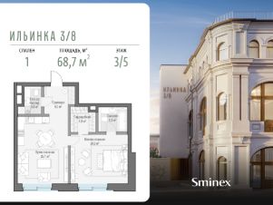 "Ильинка 3/8" - cамая близкая к Кремлю и Красной площади коллекция клубных особняков. Дом расположен на месте Тёплых торговых рядов: 160 м до Красной площади, 300 м до Кремля, 500 м до Администрации Президента. Ранее в этой исторической локации проживали представители царских сословий. По соседству находятся одна из старейших в городе Богоявленская церковь и Биржевая площадь. Расположение дарит жителям комфорт и разнообразие: пересечение Ильинки и тихого Богоявленского переулка с минимальным трафиком автомобилей, близость Никольской улицы с её насыщенной инфраструктурой - от топовых бутиков до ресторанов Michelin. "Ильинка 3/8" - это 7 эксклюзивных и роскошных особняков: 3 деликатно реконструированных исторических и 4 новых. В них представлена инфраструктура только для своих: красивый двор-сад с парадной и торжественной входной группой; лобби-бар для встреч, где можно подождать домочадцев, выпить чашечку кофе или взять её с собой; бесплатный фитнес по стандарту инфраструктуры для здорового образа жизни FIT LAB, общественная гостиная по стандарту FRIENDS LAB для знакомства и совместного времяпрепровождения соседей в доме. В клубных особняках представлены самые полные и лучшие в своём классе системы комфорта. О жителях и доме заботится Служба комфорта Smineх, которая предлагает сервис уровня 5-звёздочных отелей и сохраняет изначальный облик и концепцию дома. Девелопер проекта - Sminex, который специализируется на создании комфортной и престижной среды для жизни и работы.