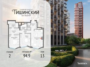 "Тишинский бульвар" - тихий зелёный элитный квартал на Тишинке, в престижном и комфортном районе центра Москвы. В нём создан уникальный для элитного дома прогулочный бульвар в своём огромном парке 1,9 га. В парке оборудованы зоны для активного и тихого отдыха, крытые галереи, приватные зелёные комнаты, многофункциональная спортивная площадка, воркаут-зона, детская площадка, сухой фонтан, ручей.