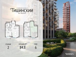"Тишинский бульвар" - тихий зелёный элитный квартал на Тишинке, в престижном и комфортном районе центра Москвы. В нём создан уникальный для элитного дома прогулочный бульвар в своём огромном парке 1,9 га. В парке оборудованы зоны для активного и тихого отдыха, крытые галереи, приватные зелёные комнаты, многофункциональная спортивная площадка, воркаут-зона, детская площадка, сухой фонтан, ручей.