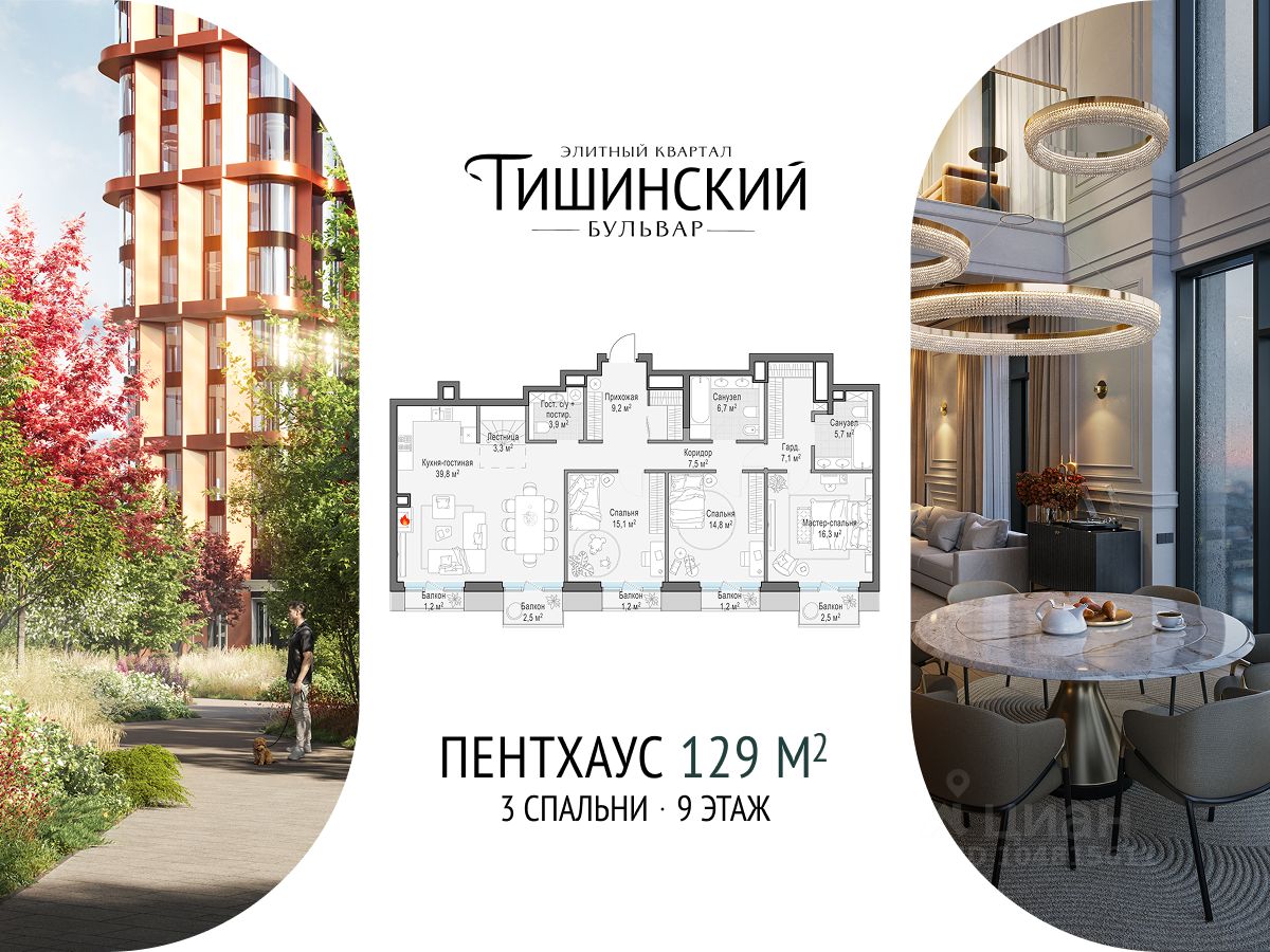 В продаже 3-комнатная квартира квартира в элитном квартале "Тишинский бульвар".