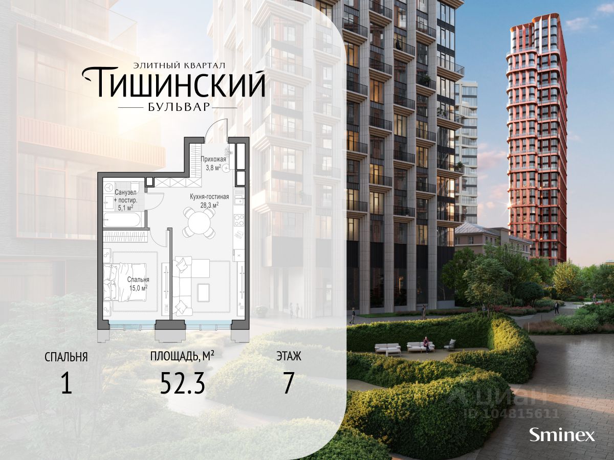 В продаже 1-комнатная квартира квартира в элитном квартале "Тишинский бульвар".