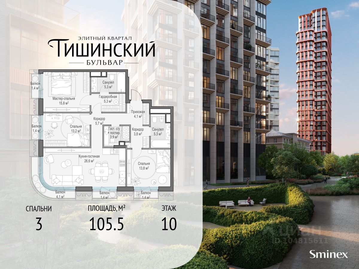 В продаже 3-комнатная квартира квартира в элитном квартале "Тишинский бульвар".