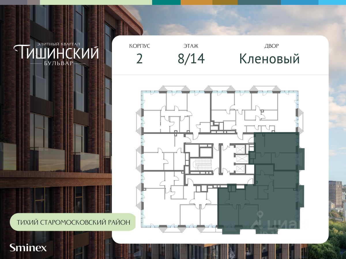 "Тишинский бульвар" - тихий зелёный элитный квартал на Тишинке, в престижном и комфортном районе центра Москвы. В нём создан уникальный для элитного дома прогулочный бульвар в своём огромном парке 1,9 га. В парке оборудованы зоны для активного и тихого отдыха, крытые галереи, приватные зелёные комнаты, многофункциональная спортивная площадка, воркаут-зона, детская площадка, сухой фонтан, ручей.