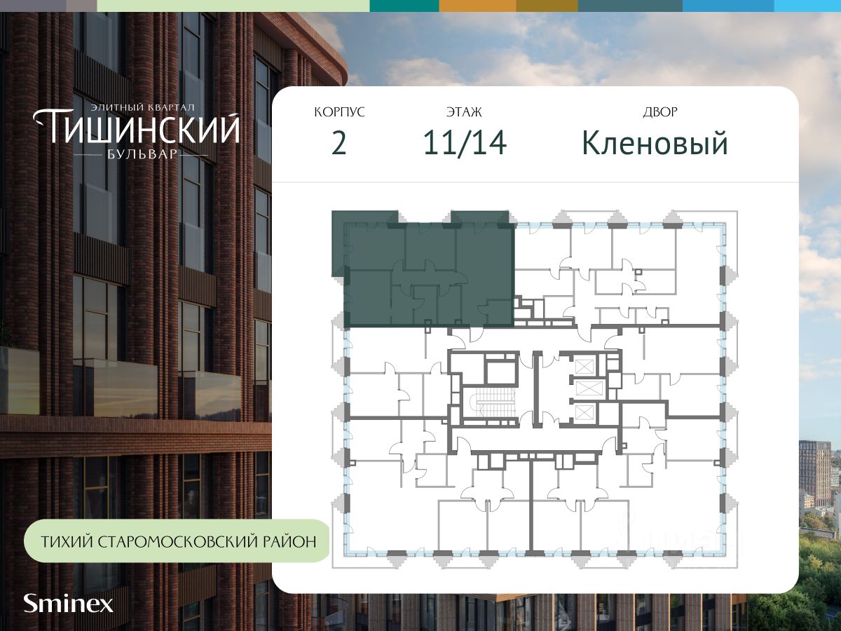 "Тишинский бульвар" - тихий зелёный элитный квартал на Тишинке, в престижном и комфортном районе центра Москвы. В нём создан уникальный для элитного дома прогулочный бульвар в своём огромном парке 1,9 га. В парке оборудованы зоны для активного и тихого отдыха, крытые галереи, приватные зелёные комнаты, многофункциональная спортивная площадка, воркаут-зона, детская площадка, сухой фонтан, ручей.