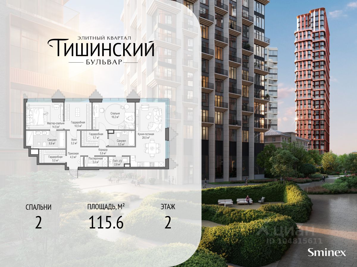 Общая площадь квартиры - 115.60 кв.м.