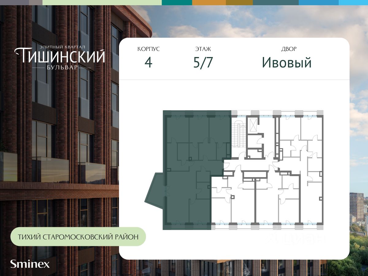 "Тишинский бульвар" - тихий зелёный элитный квартал на Тишинке, в престижном и комфортном районе центра Москвы. В нём создан уникальный для элитного дома прогулочный бульвар в своём огромном парке 1,9 га. В парке оборудованы зоны для активного и тихого отдыха, крытые галереи, приватные зелёные комнаты, многофункциональная спортивная площадка, воркаут-зона, детская площадка, сухой фонтан, ручей.