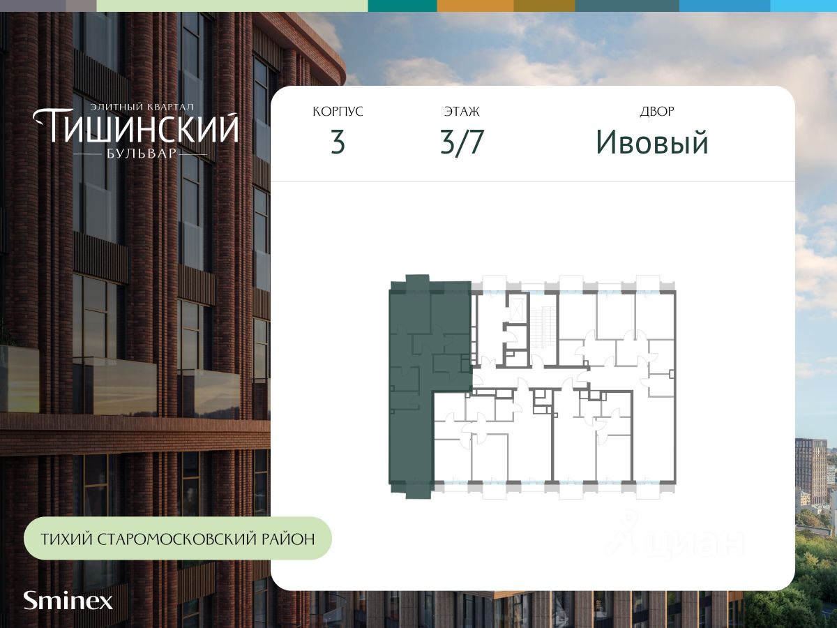 "Тишинский бульвар" - тихий зелёный элитный квартал на Тишинке, в престижном и комфортном районе центра Москвы. В нём создан уникальный для элитного дома прогулочный бульвар в своём огромном парке 1,9 га. В парке оборудованы зоны для активного и тихого отдыха, крытые галереи, приватные зелёные комнаты, многофункциональная спортивная площадка, воркаут-зона, детская площадка, сухой фонтан, ручей.