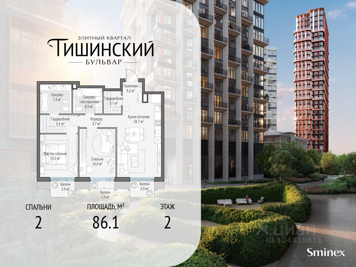 "Тишинский бульвар" - тихий зелёный элитный квартал на Тишинке, в престижном и комфортном районе центра Москвы. В нём создан уникальный для элитного дома прогулочный бульвар в своём огромном парке 1,9 га. В парке оборудованы зоны для активного и тихого отдыха, крытые галереи, приватные зелёные комнаты, многофункциональная спортивная площадка, воркаут-зона, детская площадка, сухой фонтан, ручей.
