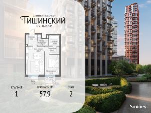 В продаже 1-комнатная квартира квартира в элитном квартале "Тишинский бульвар".