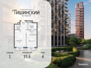 Общая площадь квартиры - 55.60 кв.м.