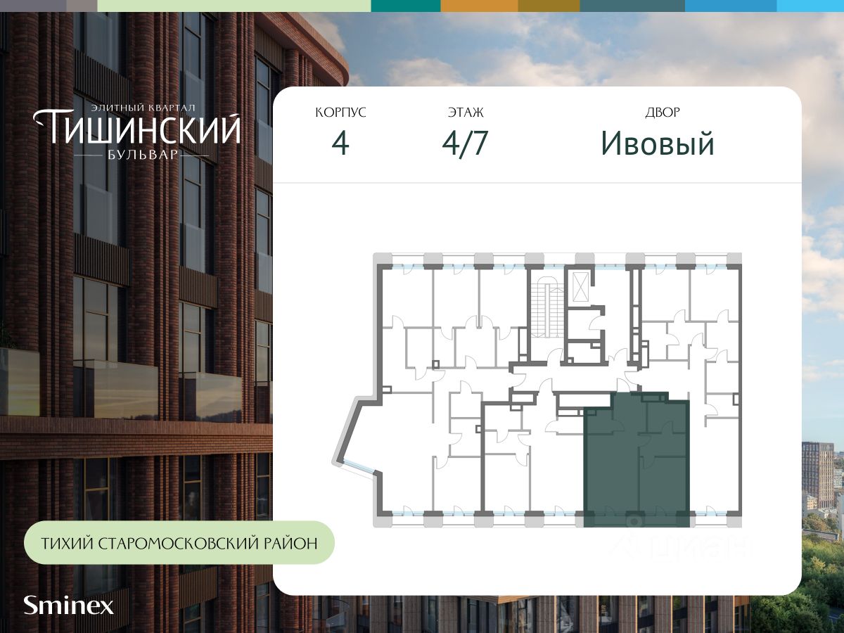 "Тишинский бульвар" - тихий зелёный элитный квартал на Тишинке, в престижном и комфортном районе центра Москвы. В нём создан уникальный для элитного дома прогулочный бульвар в своём огромном парке 1,9 га. В парке оборудованы зоны для активного и тихого отдыха, крытые галереи, приватные зелёные комнаты, многофункциональная спортивная площадка, воркаут-зона, детская площадка, сухой фонтан, ручей.