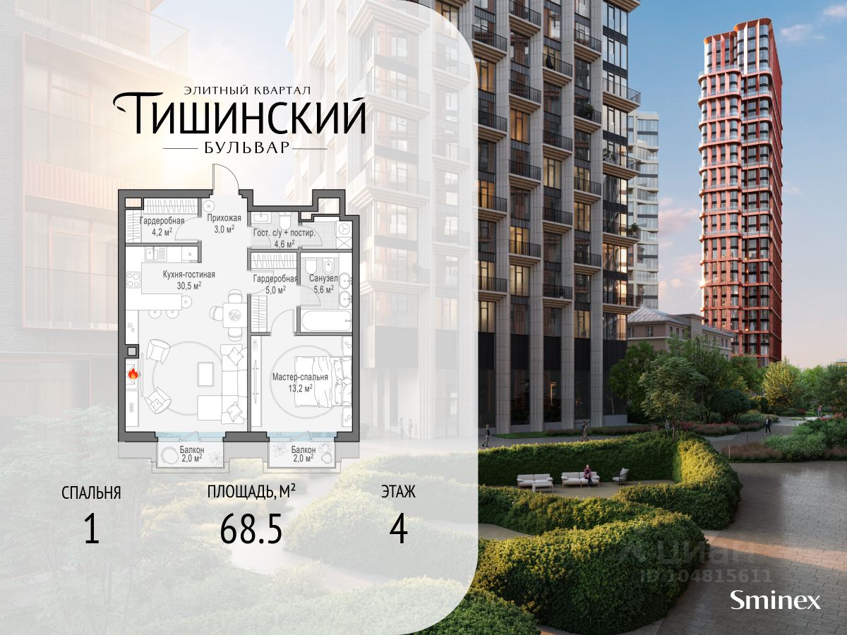 В продаже 1-комнатная квартира квартира в элитном квартале "Тишинский бульвар".