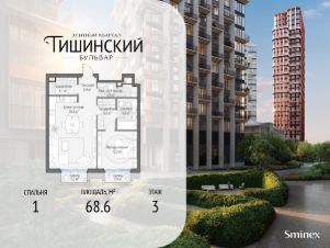 В продаже 1-комнатная квартира квартира в элитном квартале "Тишинский бульвар".