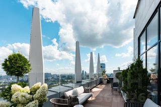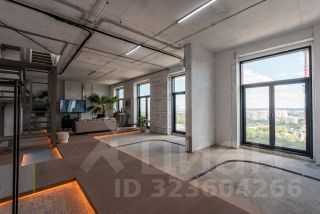 Двухуровнеый пентхаус с высотой потолка 3.5м и дровяным камином и террасой. Окна выходят на Восток в сторону парков.