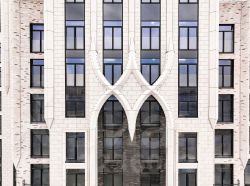 Архитектура проекта - современное прочтение торжественного и изящного стиля ар-деко, который, как и сталинский ампир, сформировался в результате развития идей чикагской школы. В доме 6 секций, 115 вариантов продуманных планировочных решений - от уютных студий до просторных пентхаусов с дровяным камином. В каждой квартире предусмотрен полный комплекс систем комфорта: принудительная центральная вентиляция с фильтрацией воздуха, очистка воды до уровня питьевой, круглогодичное горячее водоснабжение, быстрые бесшумные лифты, которые идут прямо в паркинг, продуманная подготовка под кондиционирование и другие технологические решения.
