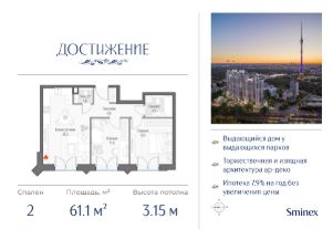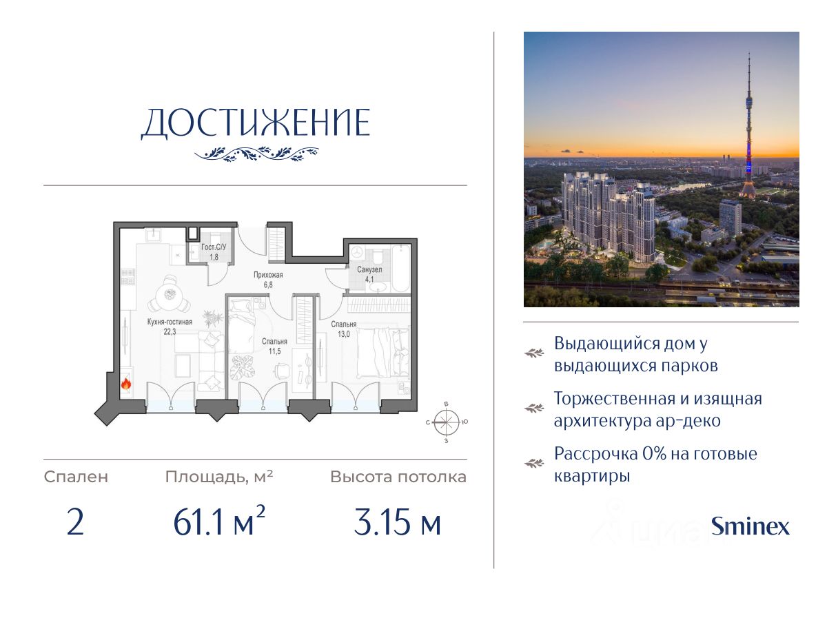 "Достижение" - единственный дом с торжественной архитектурой в окружении бескрайних парков на любой вкус: парк "Дубовая роща", обновленный классический парк "Останкино", самый известный парк России ВДНХ и крупнейший в Европе ботанический сад.