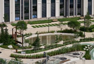 На площади 1,7 гектара создан живописный парк с террасным склоном, в котором растут луговые травы, кустарники и деревья. Пространство ландшафтного парка разделено на зоны для активного и спокойного отдыха с зелёными уголками для любителей тишины.