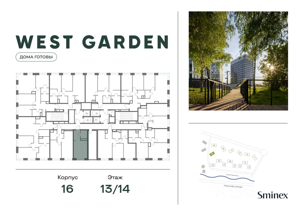 West Garden - это собрание клубных домов высотой 12-14 этажей в собственном парке 16 гектаров вдоль реки. Просторный среднеэтажный квартал расположен на Минской улице, в респектабельном Западном округе столицы. Вокруг премиальное окружение и более 1000 гектаров парков.